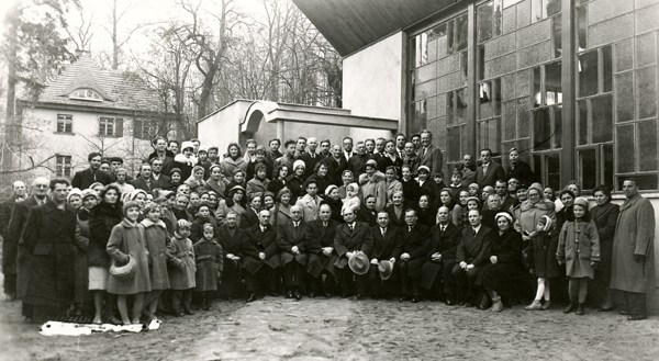 Poświęcenie kościoła w Gdańsku – Jaśkowa Dolina, 18 grudnia 1960. W piewrszym rzędzie od lewej siedzą kaznodziejowie: Marian Kot, Jerzy Lipski, Aleksander Kruk, Gustaw Baron, Stanisław Dąbrowski, Eugeniusz Szworak.