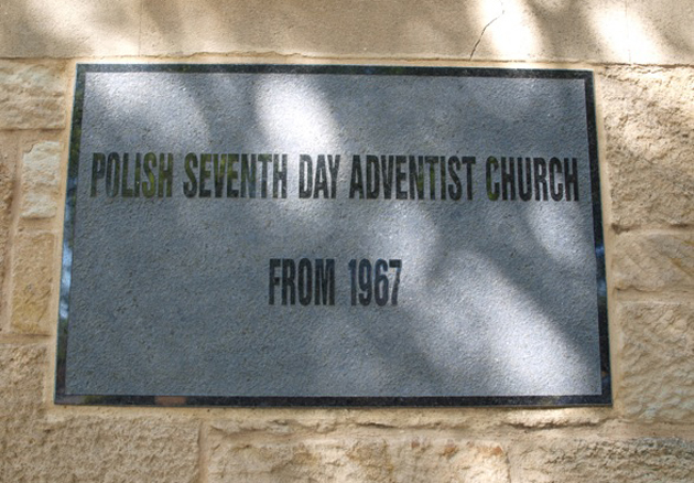 Pr Jerzy Lipski przed odejściem na emeryturę zaprojektował i ufundował tablicę marmurową, która została wmurowana na frontowej ścianie kościoła – „Polski Kościół Adwentystów Dnia Siódmego od 1967”. Pr Lipski podejmując ten projekt dla upamiętnienia, że był tu taki kościół, nie przypuszczał, że „polski” z nazwy zniknie tak szybko…i dziś w kamiennej ścianie…na marmurowej tablicy – został tylko ślad…