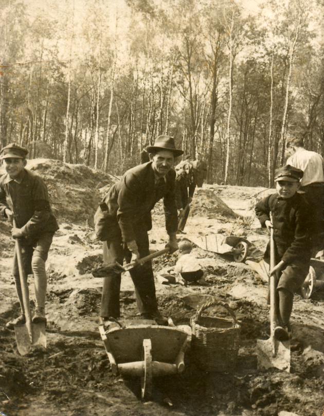 zre04Sypanie Kopca Piłsudskiego, 1937r.  Od lewej: Marian, Ludwik (ojciec), Ryszard.