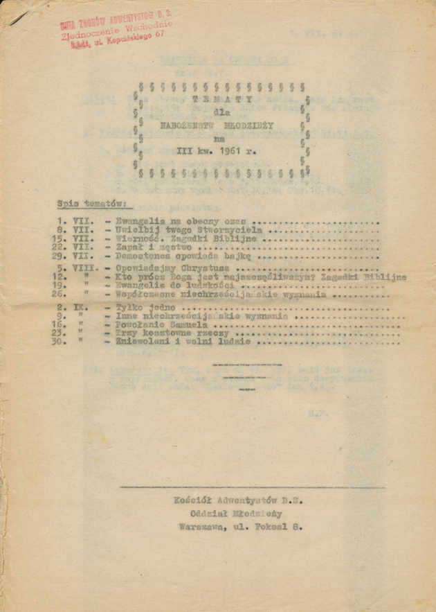 /„Z pożółkłych kart przeszłości” – cz. XX, ukaże się w najbliższym numerze Wiadomości Polonii Adwentystycznej, tj. 1/2013 r./